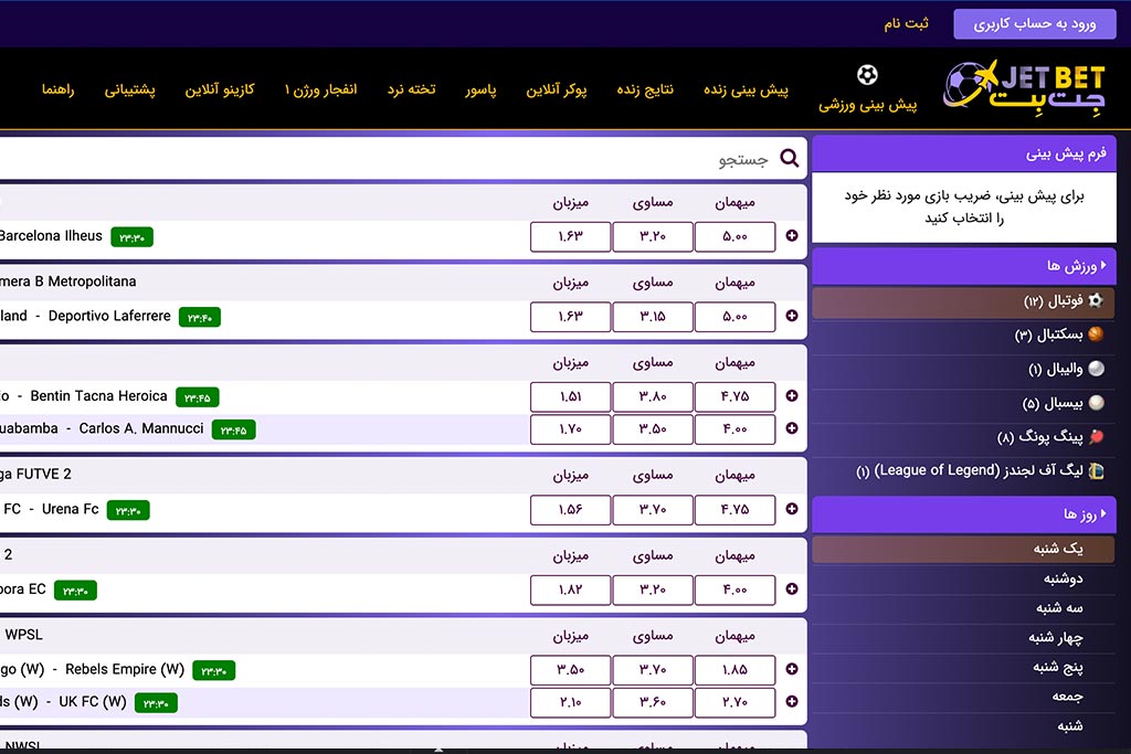 - انتخاب بازیها: به بخش پیش بینی فوتبال بروید و بازیهای مورد نظر خود را از میان مسابقات موجود انتخاب کنید.